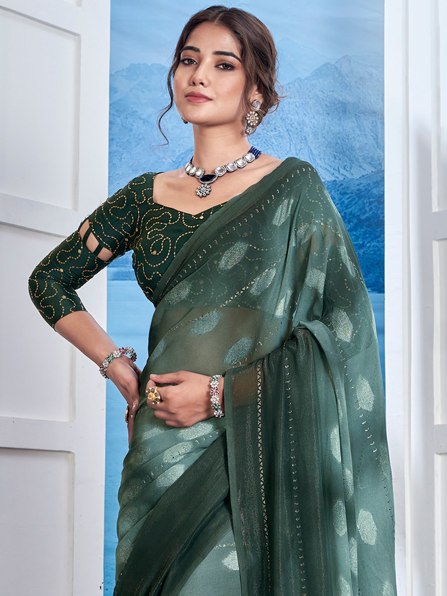 Women's Georgette Teal green Printed Designer Saree With Blouse Piece