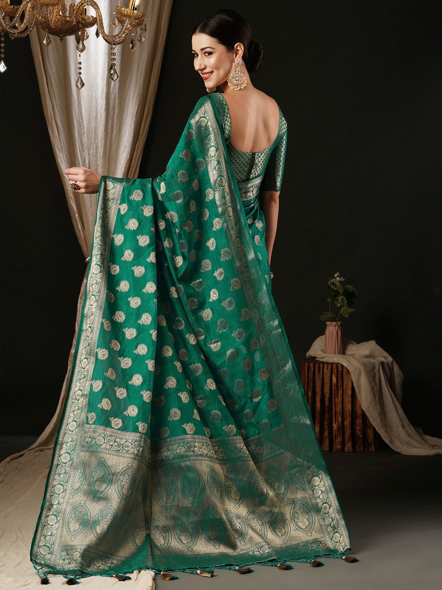 Women's Georgette Turquoise Woven Design Designer Saree With Blouse Piece