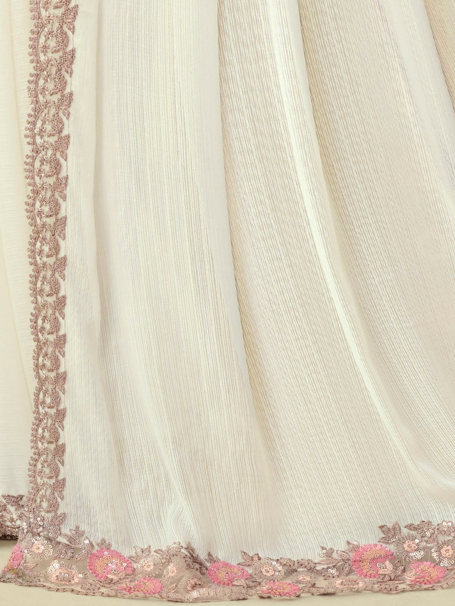 Women's Georgette White Embellished Designer Saree With Blouse Piece