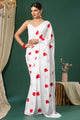 Women's Georgette White Embroidered Designer Saree With Blouse Piece
