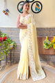 Women's Georgette Yellow Embellished Designer Saree With Blouse Piece
