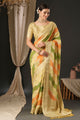 Women's Georgette Yellow Woven Design Designer Saree With Blouse Piece