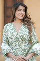 Women Green And White Angrakha Kurta Pant Dupatta Set