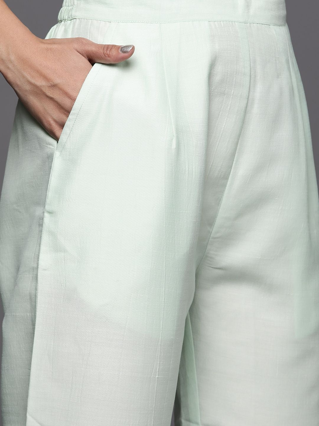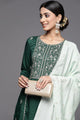 Dhiyona VA Women's Green Ethnic Motifs Yoke Design Gotta Patti Pure Cotton Kurta with Trousers & With Dupatta