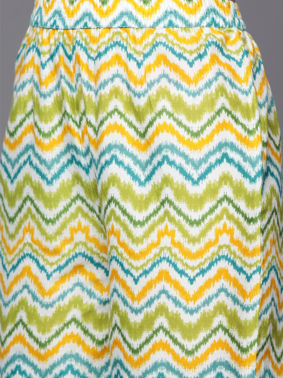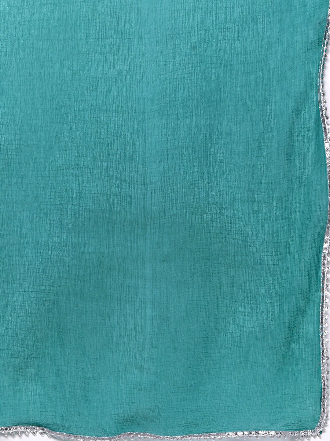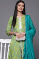 Dhiyona VA Women's Green Floral Printed High Slit Mirror Work Pure Cotton Kurta with Palazzos & With Dupatta