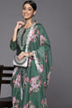 Dhiyona VA Women's Green Floral Yoke Design Chanderi Silk Kurta with Trousers & With Dupatta