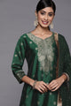 Green woven design Kurta with Trousers with dupatta