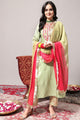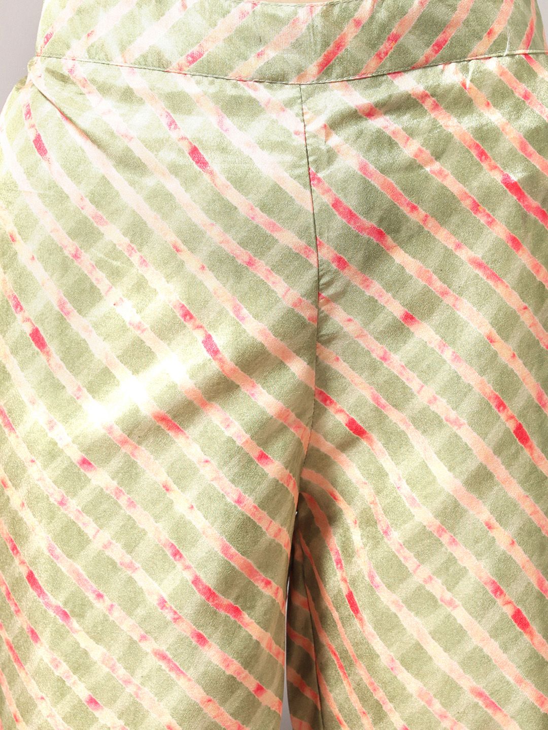 Dhiyona VA Women's Green Leheriya Embroidered Mirror Work Kurta with Trousers & With Dupatta