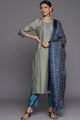Green & Navy Blue embroidered Kurta with Trousers & dupatta