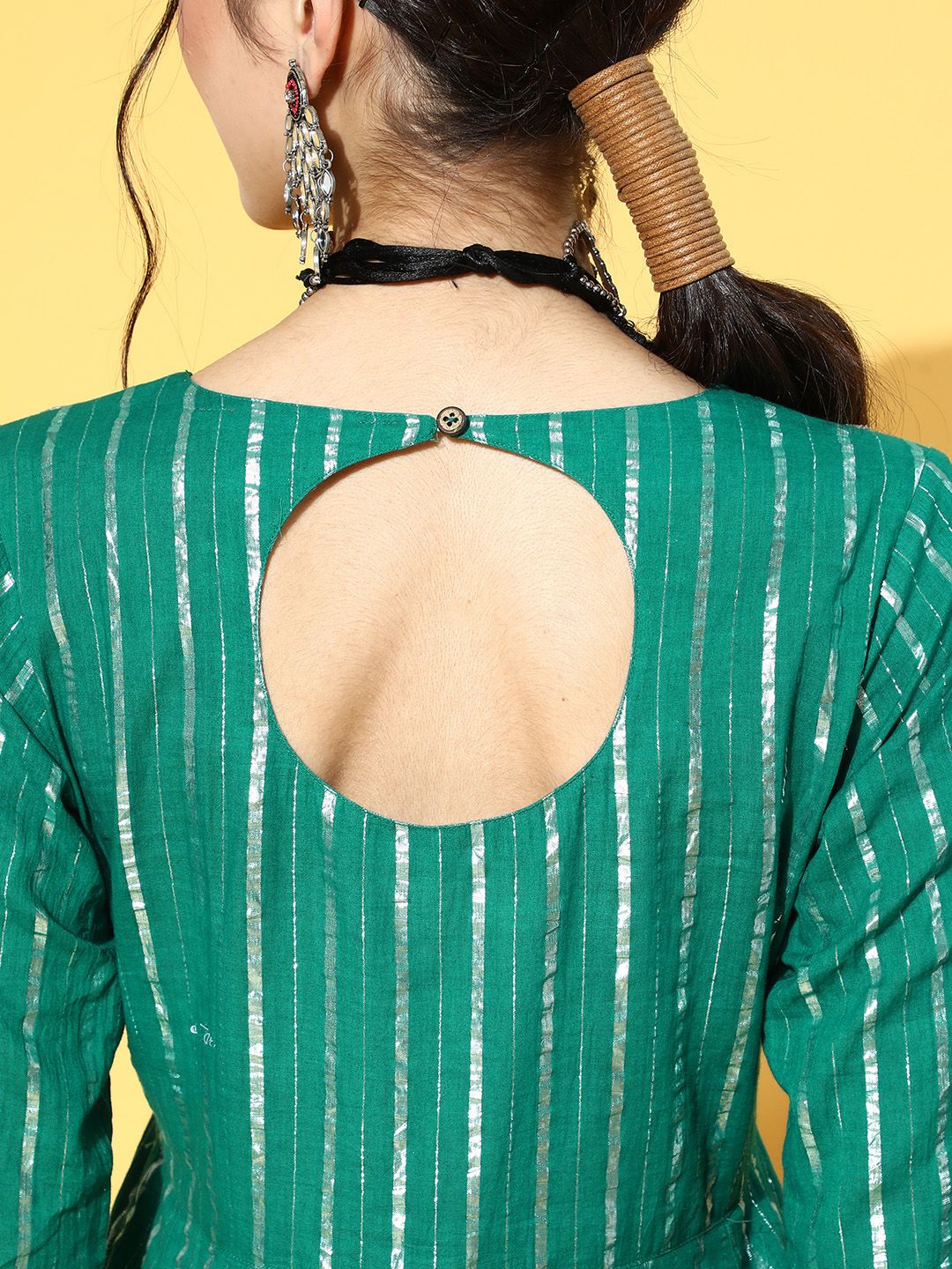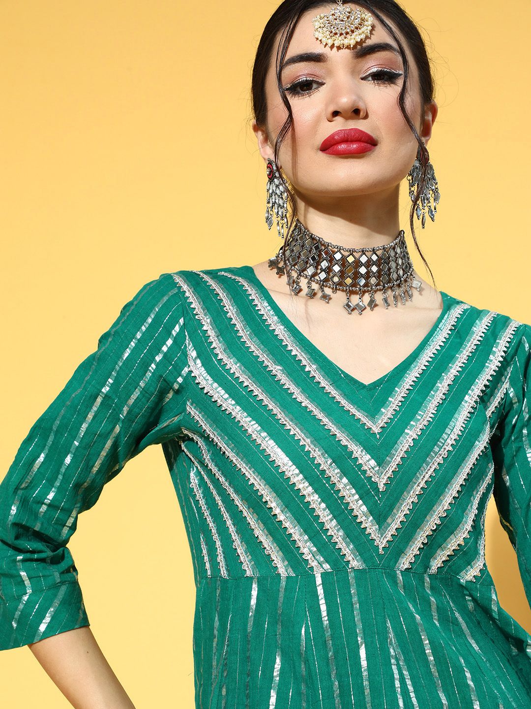 Dhiyona VA Women's Green & Silver Striped Gotta Patti Kurta Set