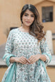 Women Grey And Turquoise Tiered Kurta Pant Dupatta Set