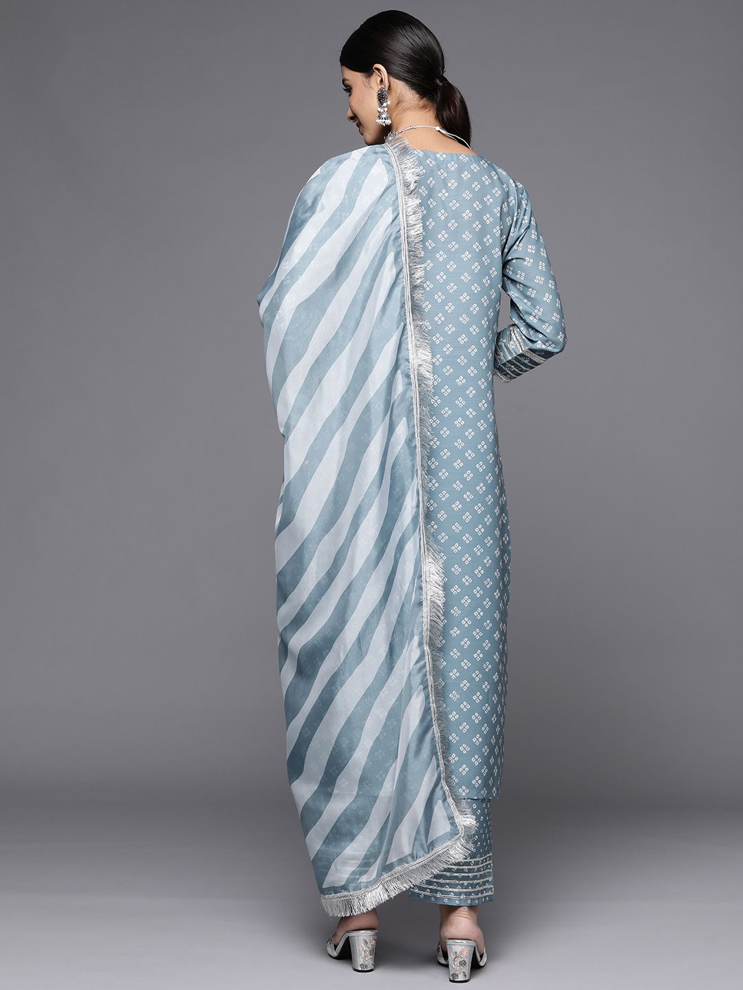 Grey yoke design Kurta with Trousers and dupatta