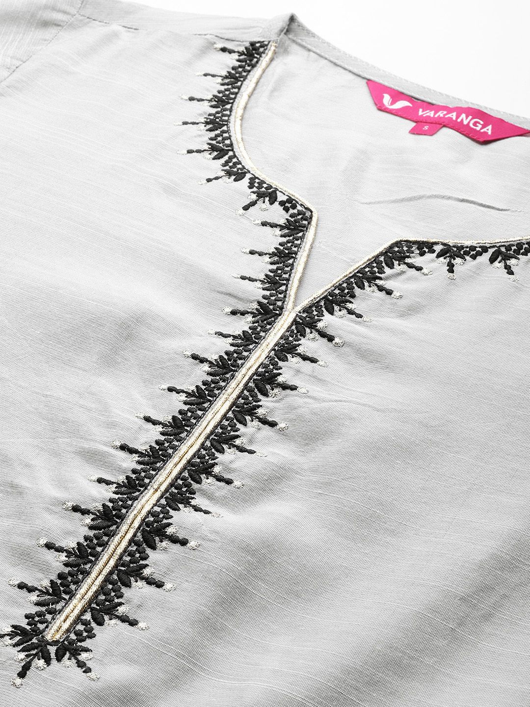 Dhiyona VA Women's Grey & Black Kurta with Trousers & Dupatta