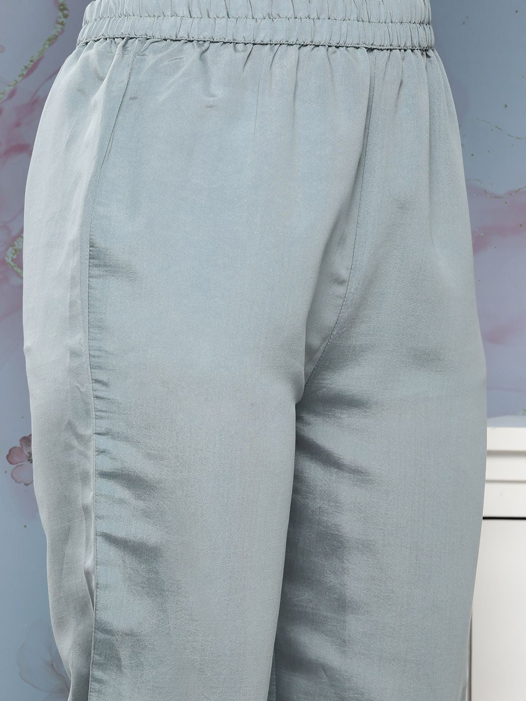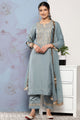 Dhiyona VA Women's Grey Ethnic Motifs Gotta Patti Kurta with Trousers & With Dupatta