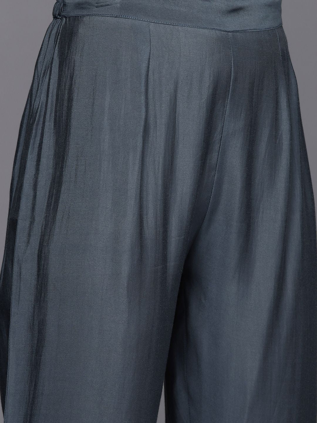 Dhiyona VA Women's Grey Ethnic Motifs Yoke Design Mirror Work Kurta with Trousers & With Dupatta