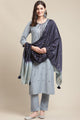 Dhiyona VA Women's Grey & Navy Blue Floral Embroidered Kurti with Trousers & With Dupatta