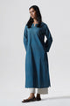 Women's Indigo Blue Cotton Kurta and Cream Bottom Set