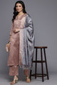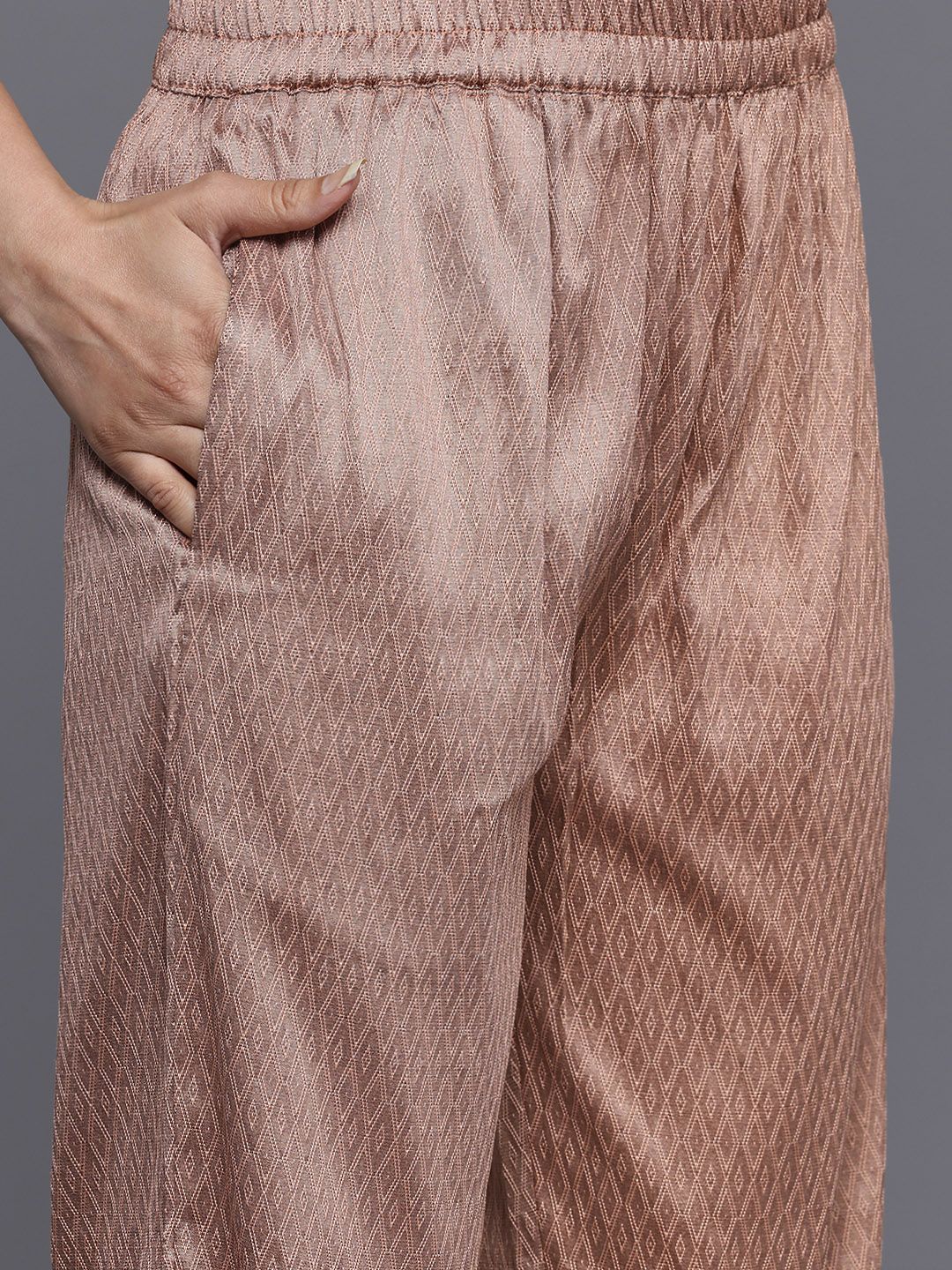 Peach Jacquard Gota Embellished Kurta with Trousers with dupatta