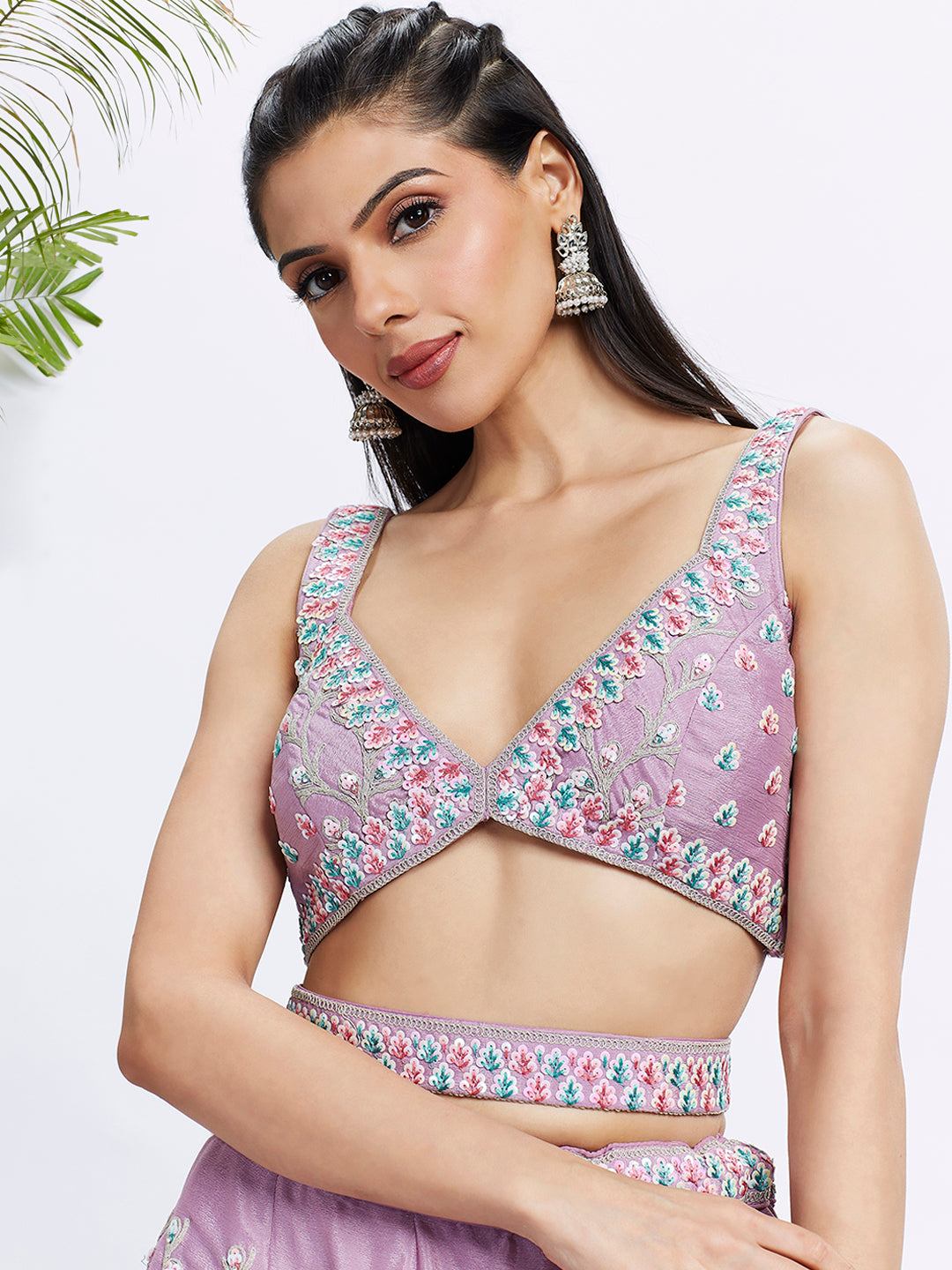 Women Lavender Pure Chiffon Sequins and thread embroidery Lehenga choli & Dupatta