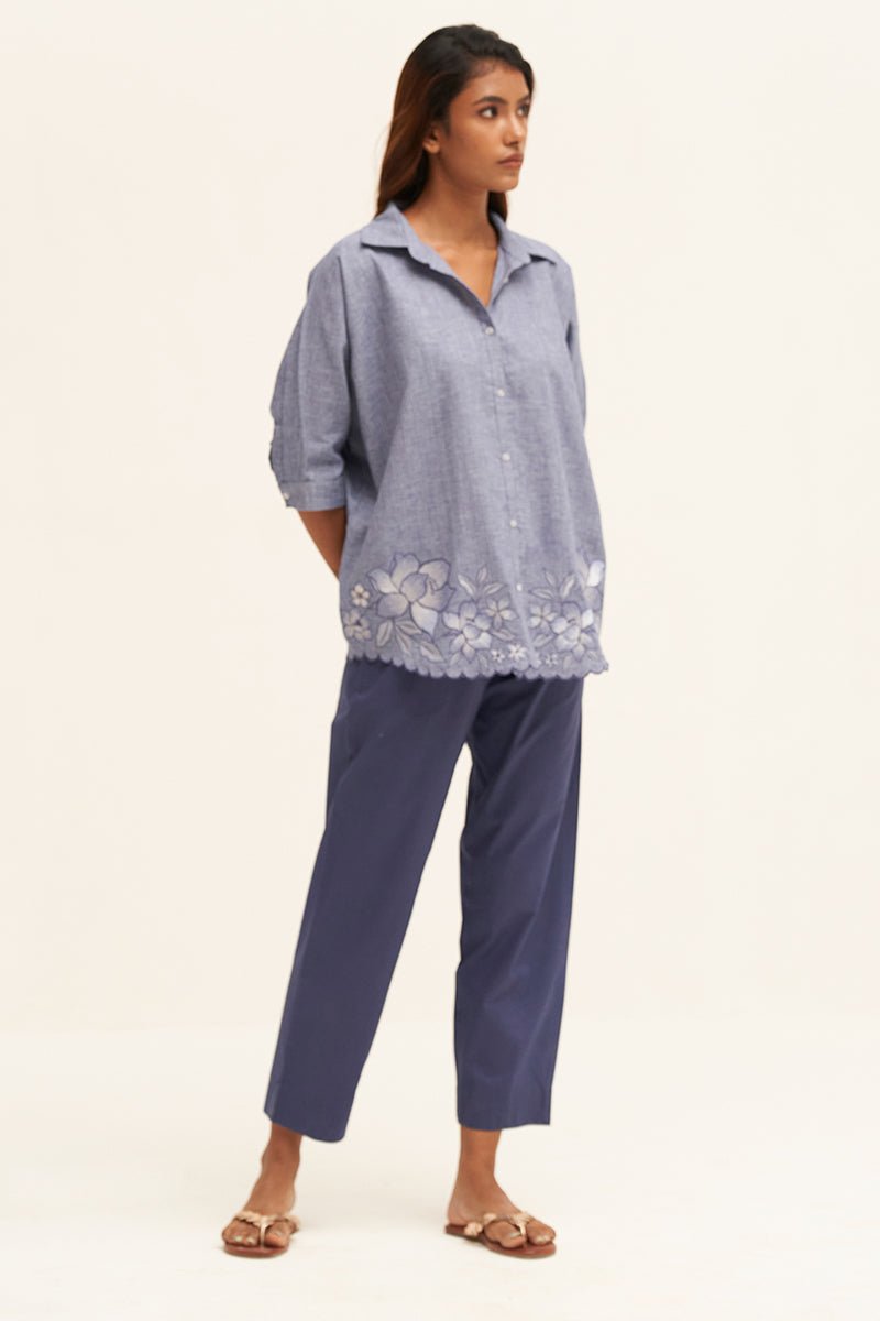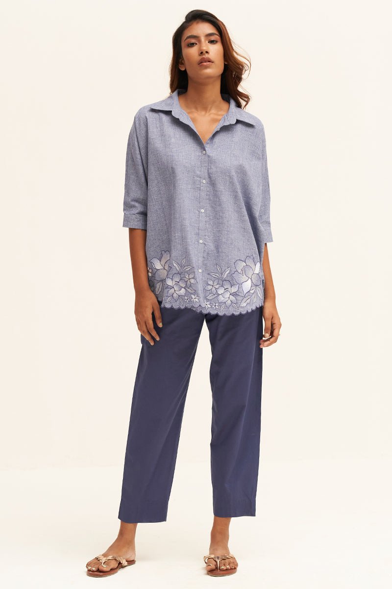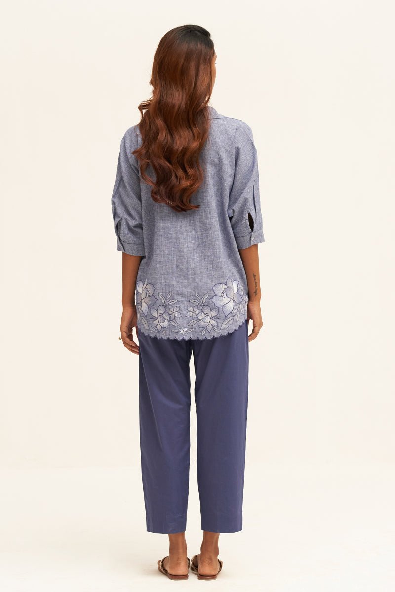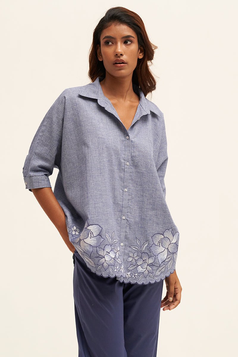 Women's Light and Dark Blue Cotton Embroidered Co-ord Set