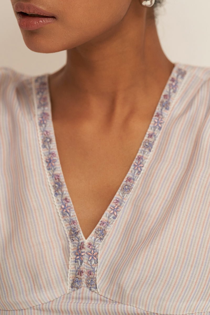 - Top- Stripe printed bemberg silk kurta has thread embroidery detailing along with the lace addition