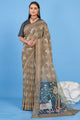 Women's Linen Blend Beige Printed Designer Saree With Blouse Piece