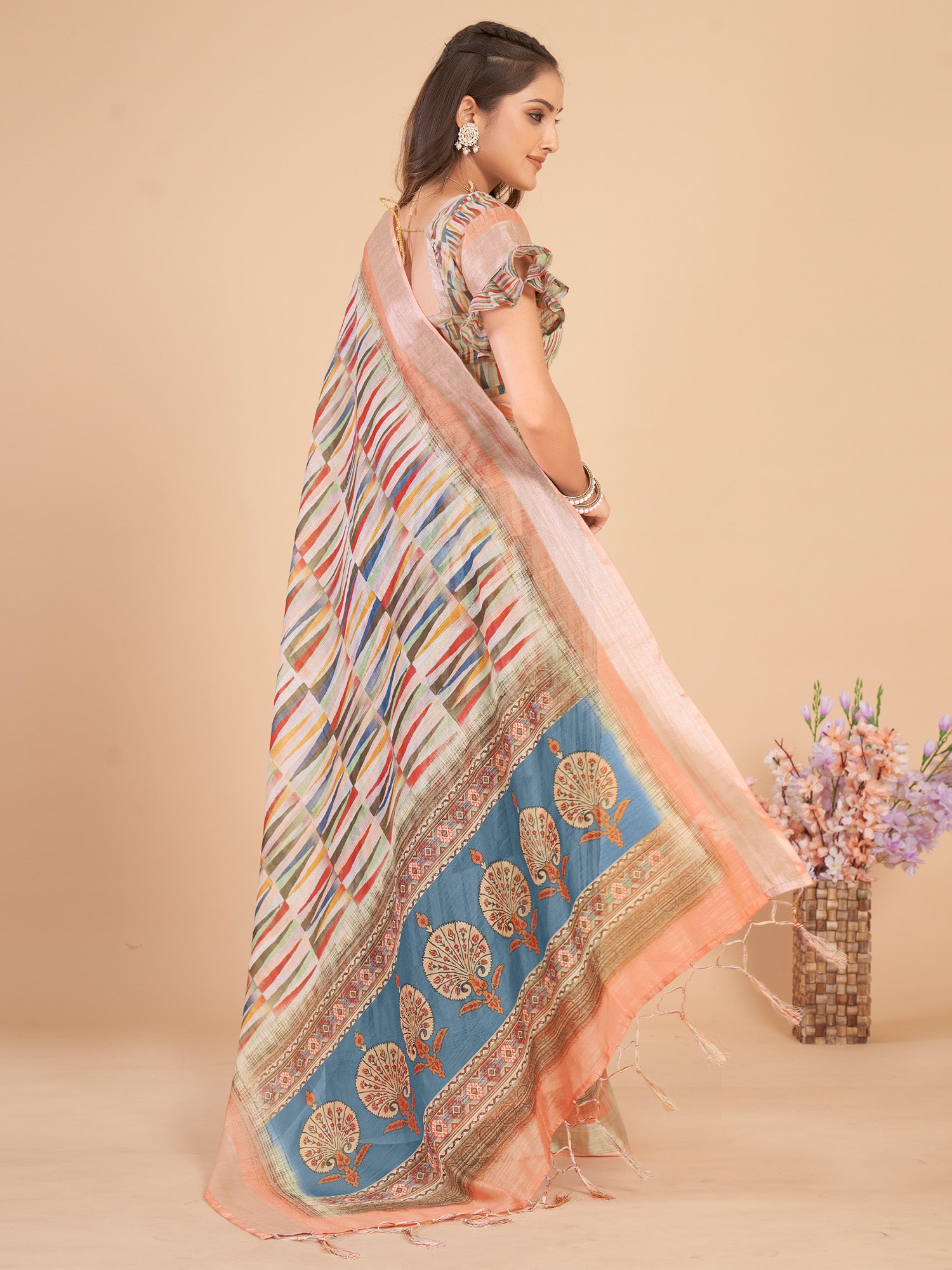 This saree from Dhiyona Fashion is made from Linen Blend and is Multicolored in color. Dhiyona Fashion Ethnic Sarees comes With Blouse Piece, Which can be Stitched according to Your Taste and Preference. This Saree is Crafted by Skill Craftsmen without Compromising on its Quality. With This Beautiful Design and Fabric, This Saree will fetch You Oodles of Compliments and Praise. saree fit size is 5.5 mtr saree & 0.8 mtr blouse, Free Size |.