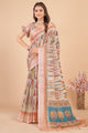 Women's Linen Blend Multicolored Printed Designer Saree With Blouse Piece