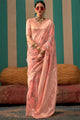 Women's Linen Peach Woven Design Designer Saree With Blouse Piece