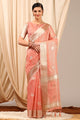 Women's Linen Peach Woven Design Designer Saree With Blouse Piece