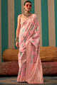 Women's Linen Pink Woven Design Designer Saree With Blouse Piece