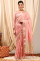 Women's Linen Pink Woven Design Designer Saree With Blouse Piece