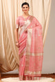 Women's Linen Pink Woven Design Designer Saree With Blouse Piece