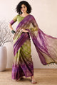 Women's Linen Purple Printed Ready to Wear With Blouse Piece
