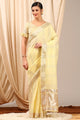 Women's Linen Yellow Woven Design Designer Saree With Blouse Piece