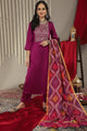 Dhiyona VA Women's Magenta Ethnic Motifs Yoke Design Kurta with Trousers & With Dupatta