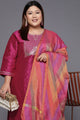 Dhiyona VA Women's Magenta Floral Embroidered Kurta with Trousers & Dupatta