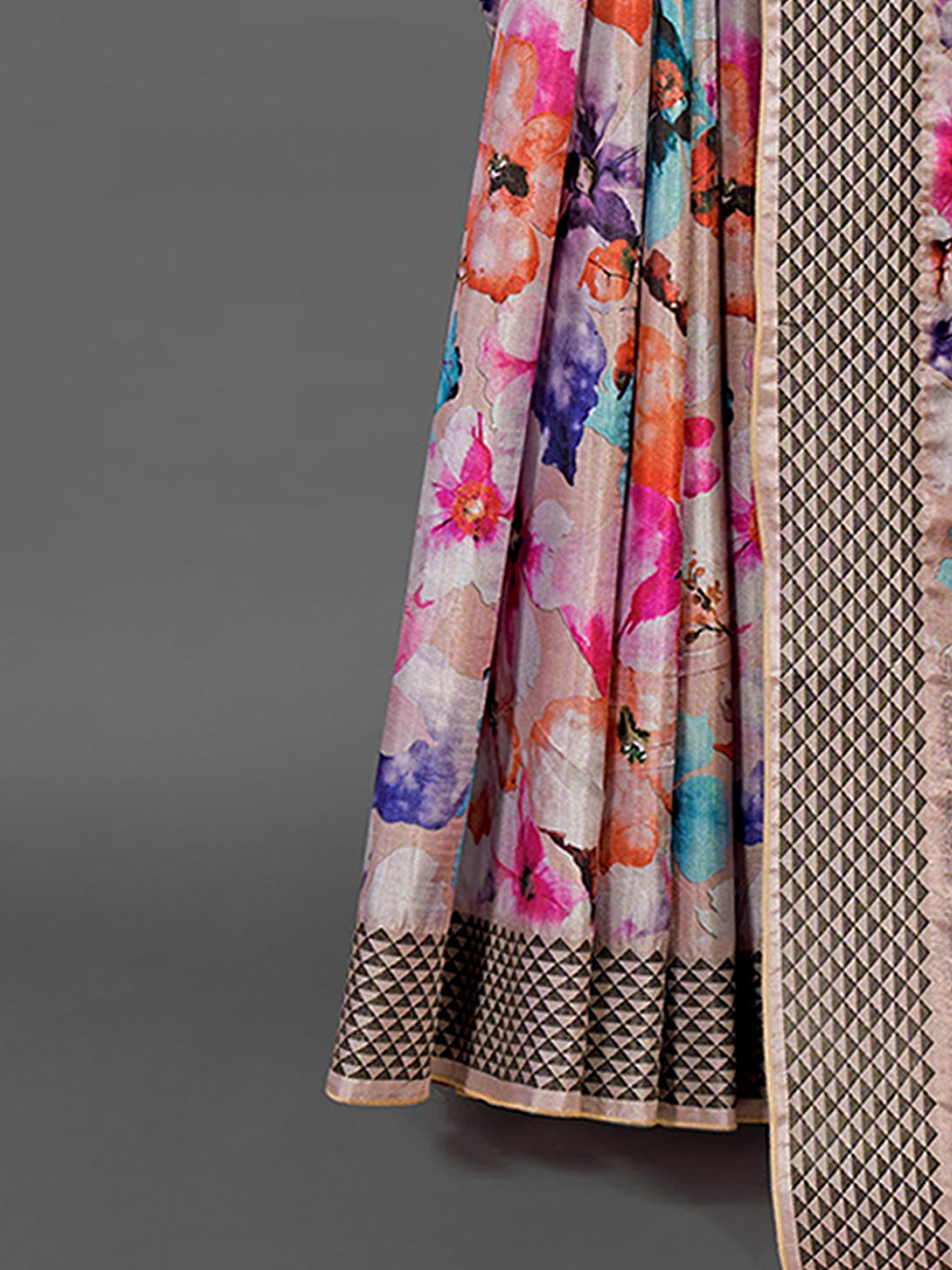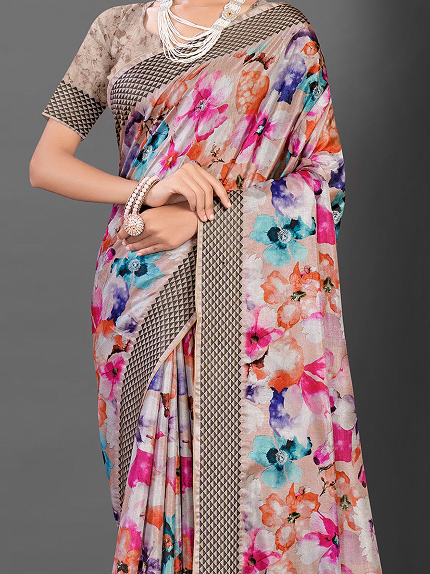 Women's Manipuri Silk Beige Printed Designer Saree With Blouse Piece