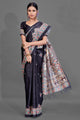 Women's Manipuri Silk Black Digital Print Designer Saree With Blouse Piece
