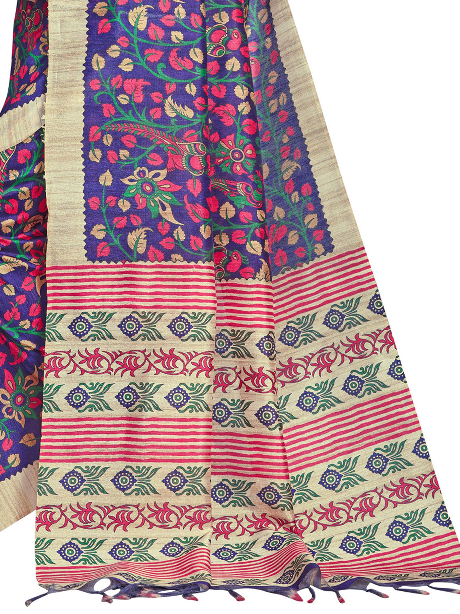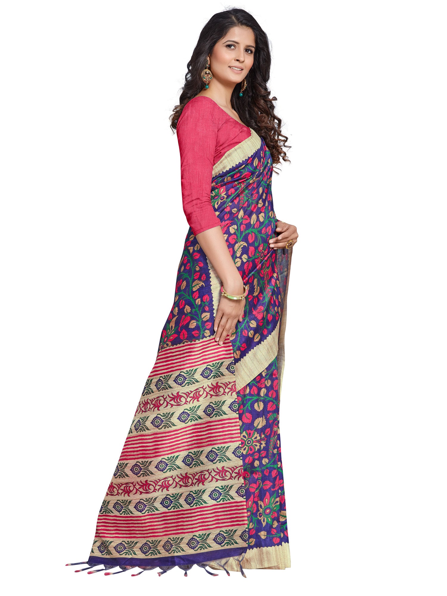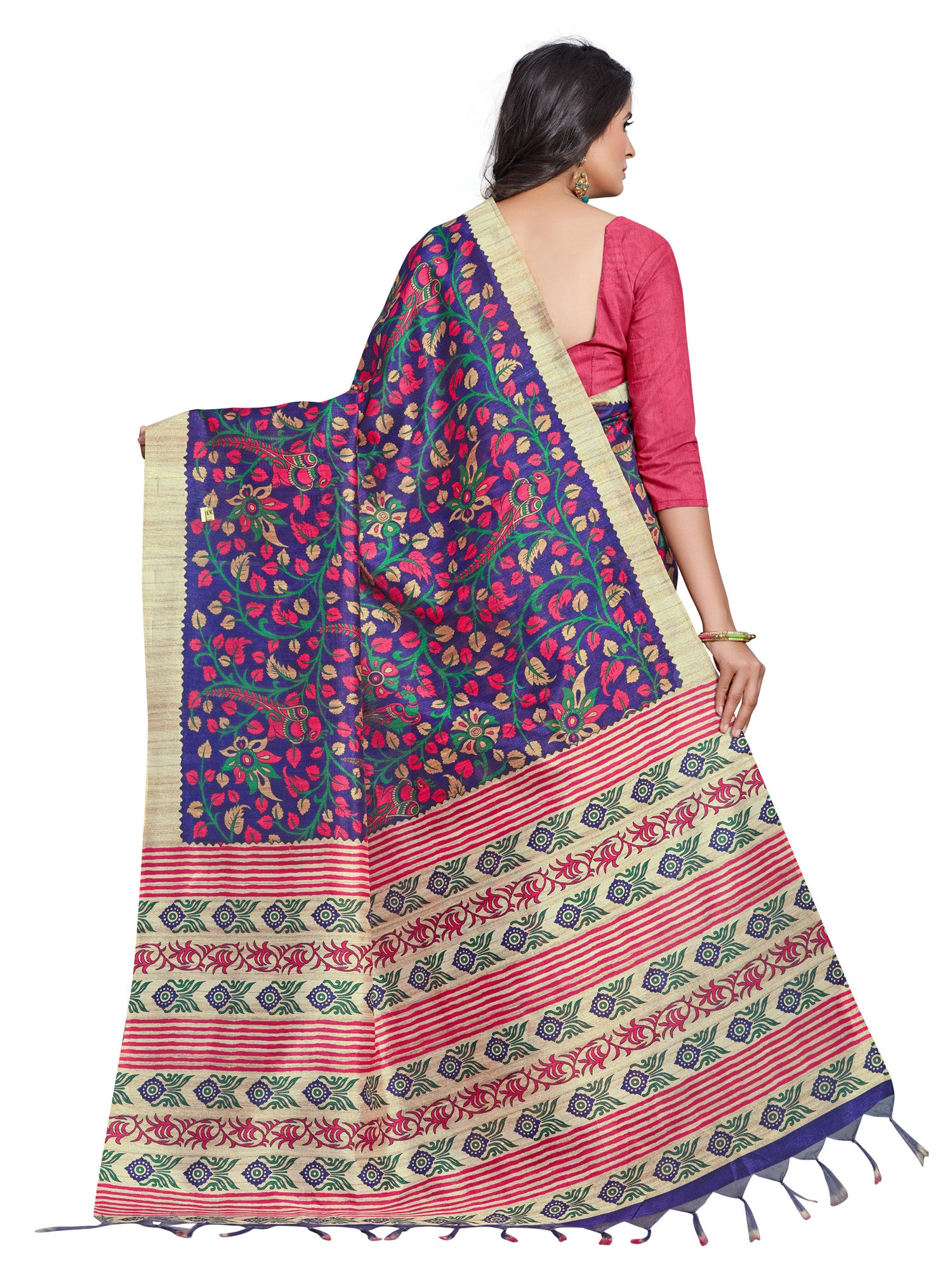 Women's Manipuri Silk Blue Digital Print Designer Saree With Blouse Piece