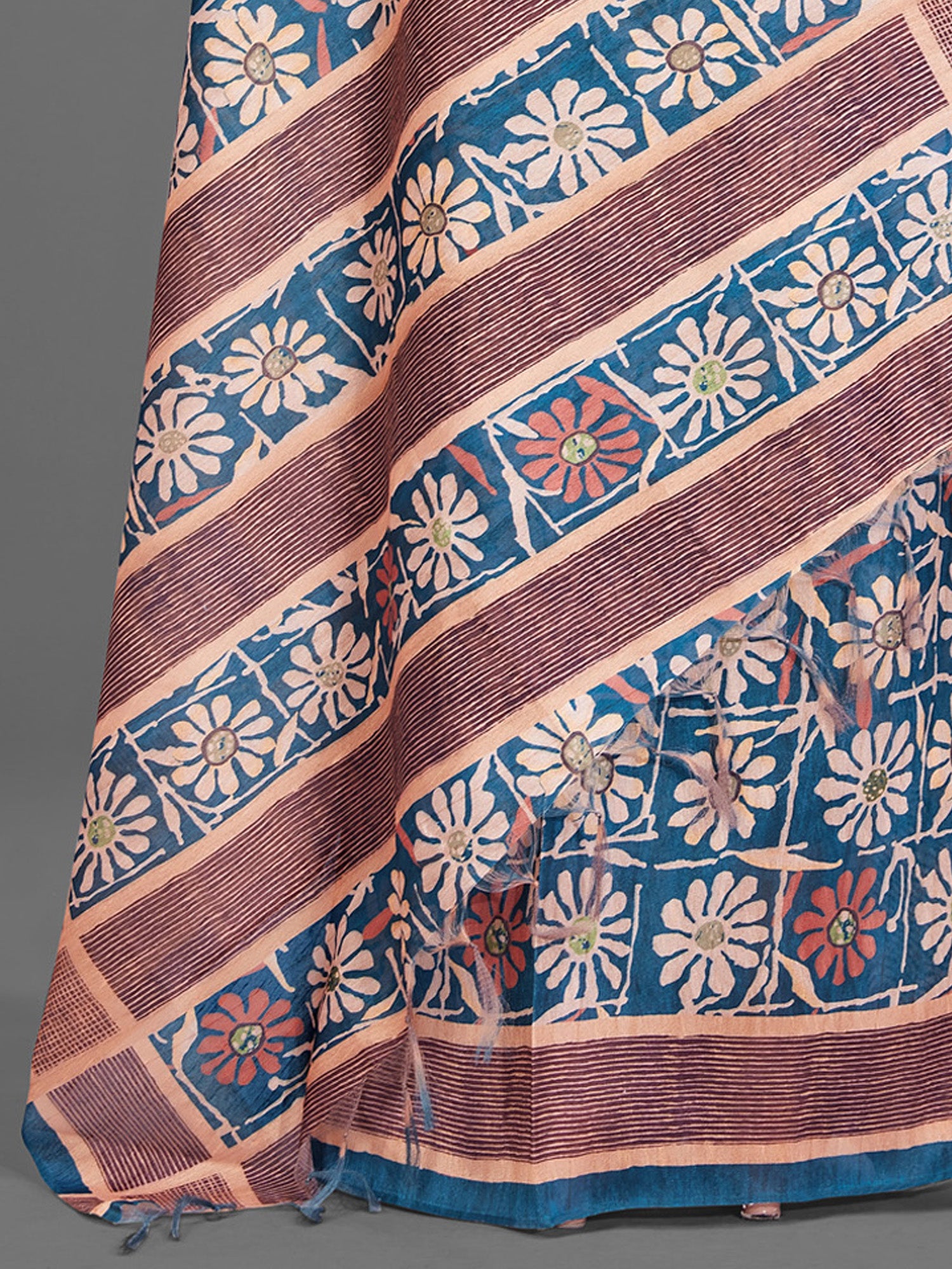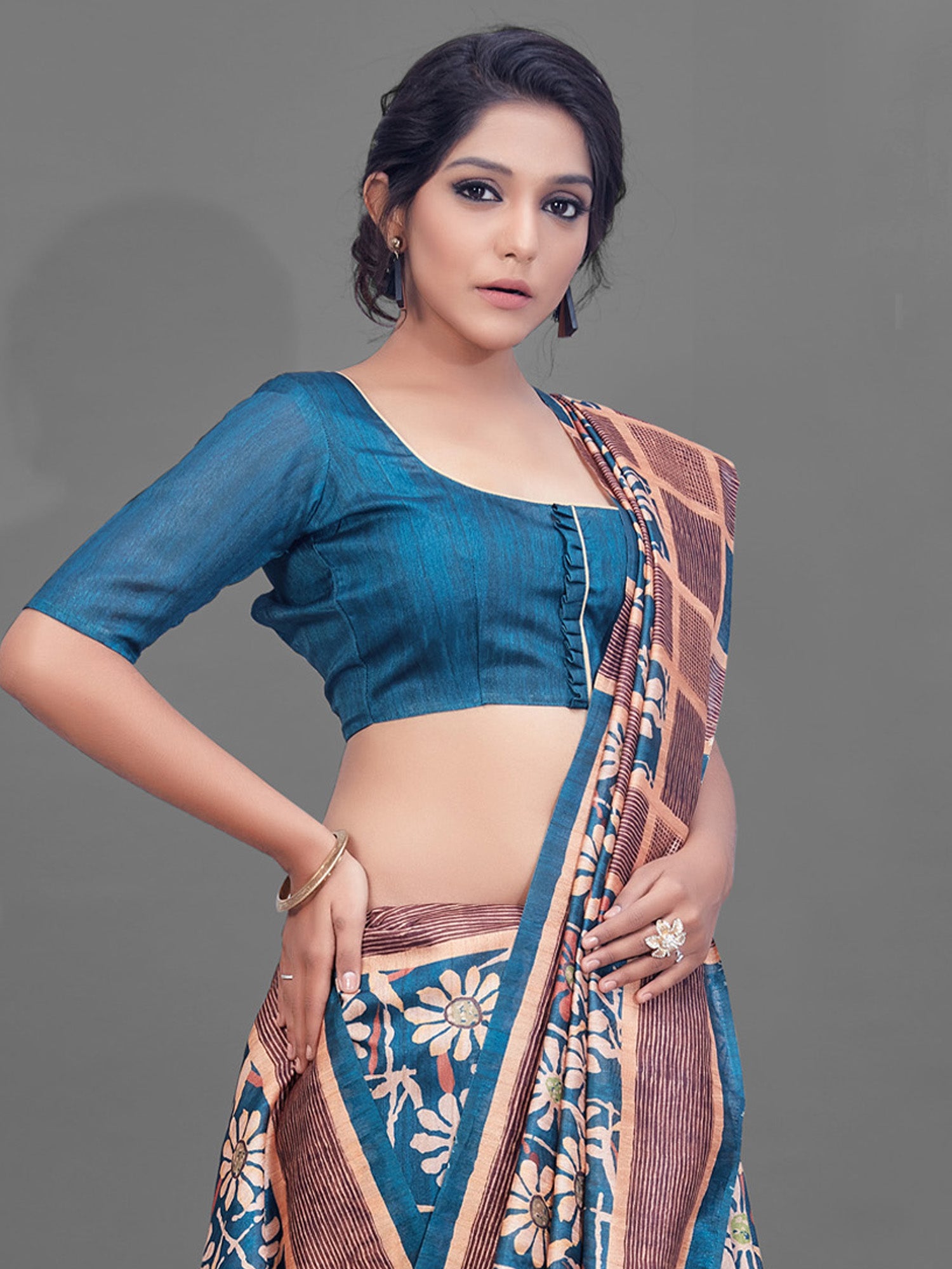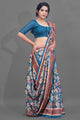 Women's Manipuri Silk Blue Digital Print Designer Saree With Blouse Piece