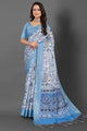 Women's Manipuri Silk Blue Printed Designer Saree With Blouse Piece