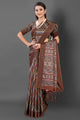 Women's Manipuri Silk Brown Printed Designer Saree With Blouse Piece