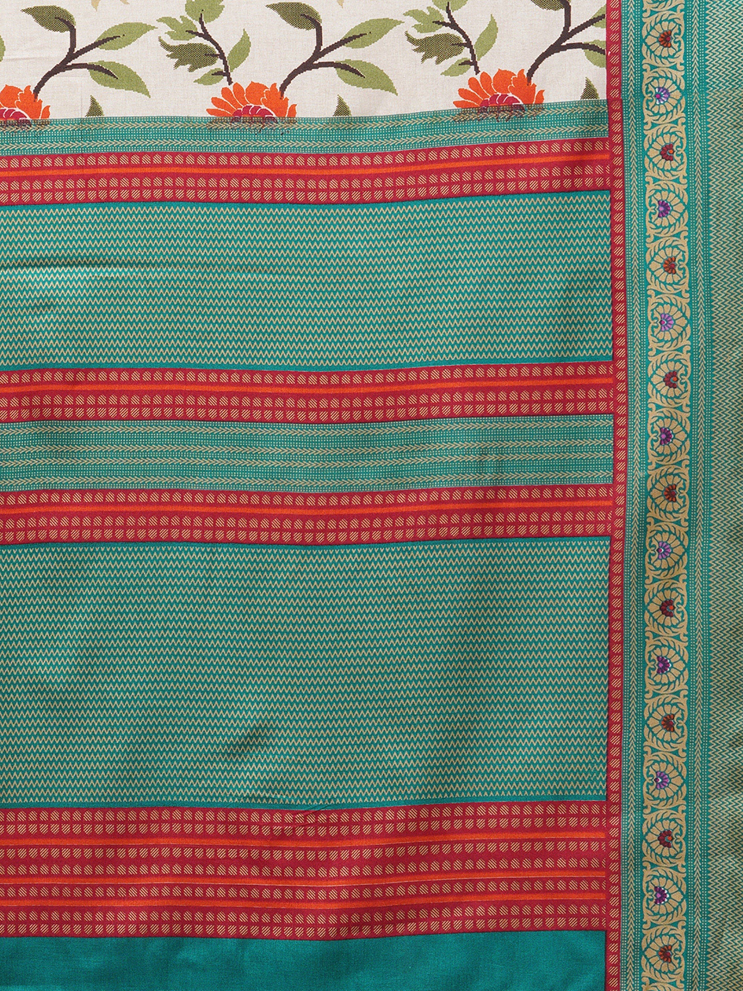 Women's Manipuri Silk Cream Printed Designer Saree With Blouse Piece