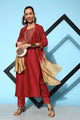 Dhiyona VA Women's Maroon Ethnic Motifs Embroidered Kurta With Trousers & Dupatta
