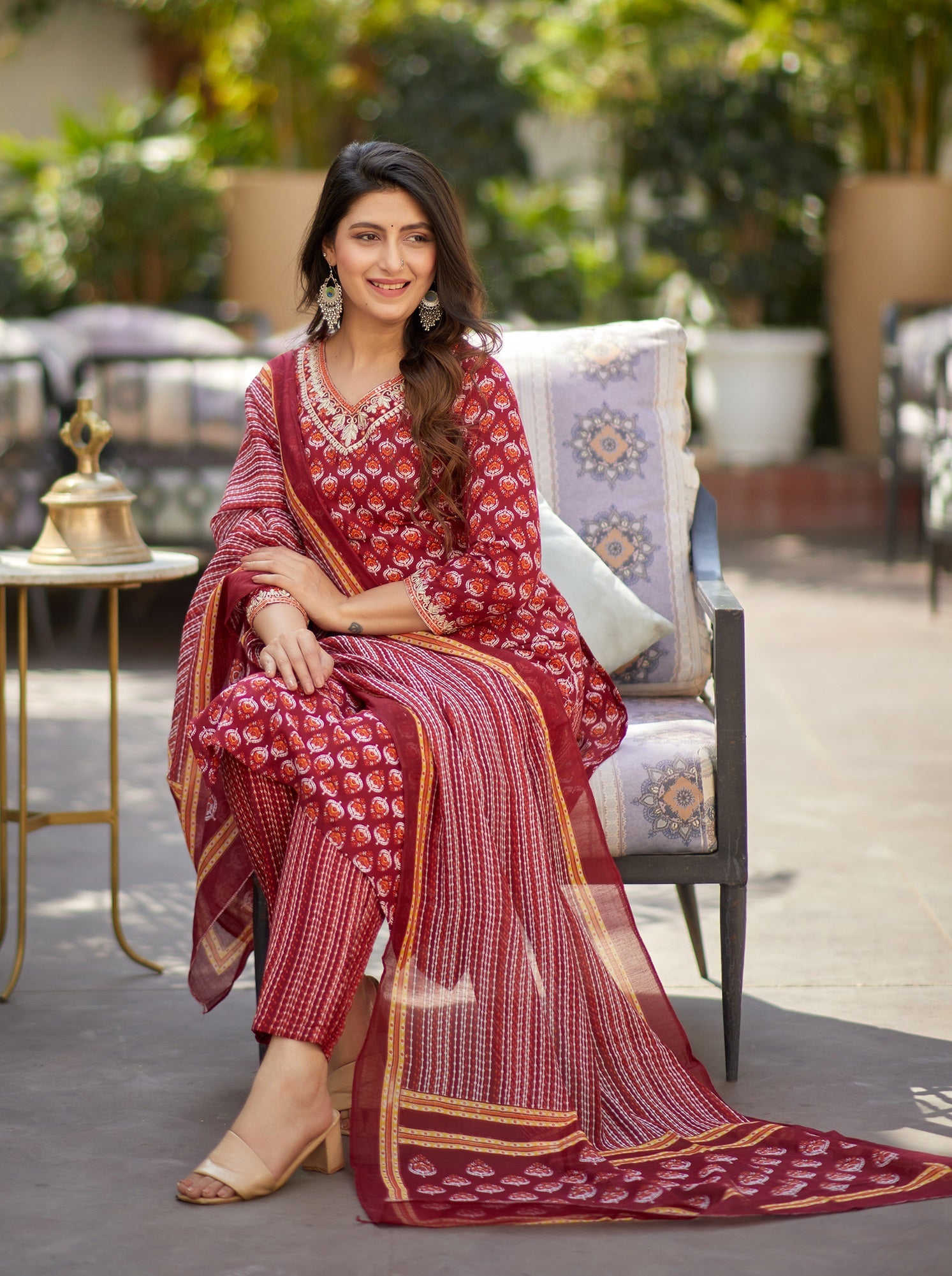The women kurta set is the perfect blend of effortless style and comfort. Thoughtfully crafted with love, it features intricate patterns and vibrant colors that bring a chic and coordinated look. This versatile ensemble is ideal for both casual and festive occasions. With its flattering fit and timeless design, it seamlessly merges tradition with modern flair, making it a staple piece in any wardrobe.Color: Maroon||Kurta Material: Pure Cotton||Bottom Material: Pure Cotton||Dupatta Material: Pure Cotton||Pattern: Printed||Kurti Length: Regular Fit||Sleeve Type: Calf||Occasion: Casual||Neck Type: V-neck