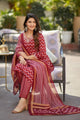 Women Maroon Printed Pure Cotton Kurta, Pant And Dupatta Set