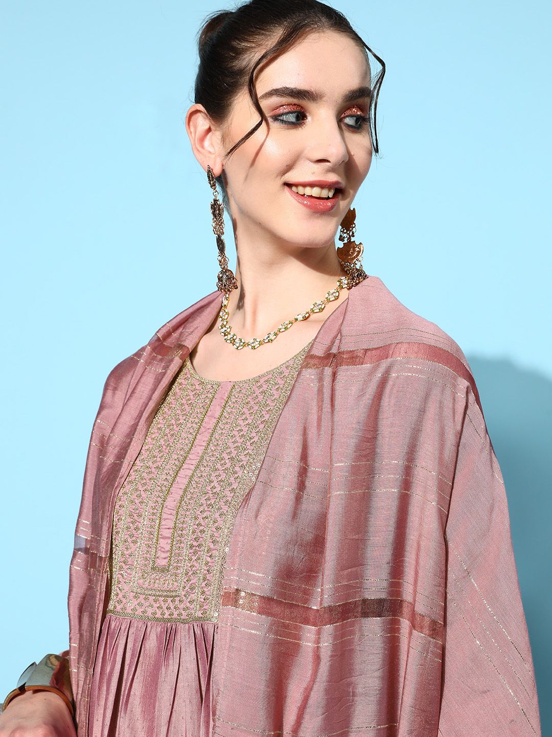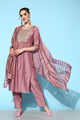Dhiyona VA Women's Mauve Embroidered Kurta With Trousers & Dupatta