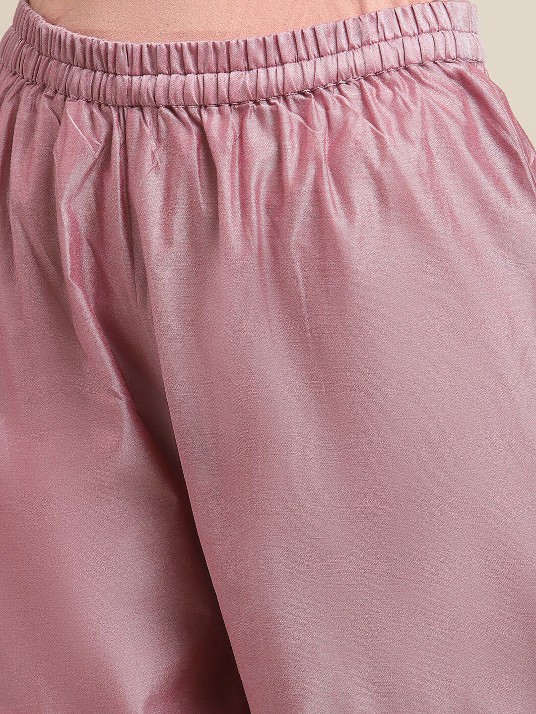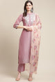Dhiyona VA Women's Mauve Floral & Peach Yoke Design Chanderi Silk Kurta Set