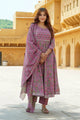 Women Mauve Gotta Patti Anarkali Kurta Pant Dupatta Set